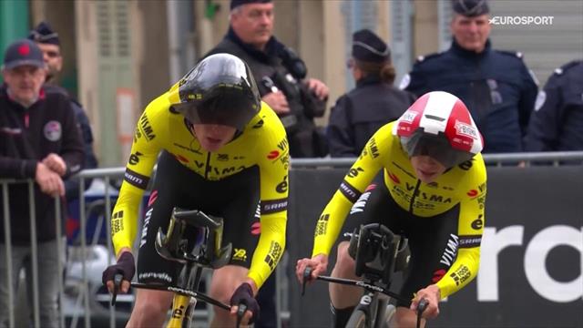 "Die Highlights der 3. Etappe von Paris - Nizza: Sekundenjagd im Mannschaftszeitfahren mit Jonas Vingegaard und Team Visma im Kampf gegen die Uhr."