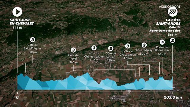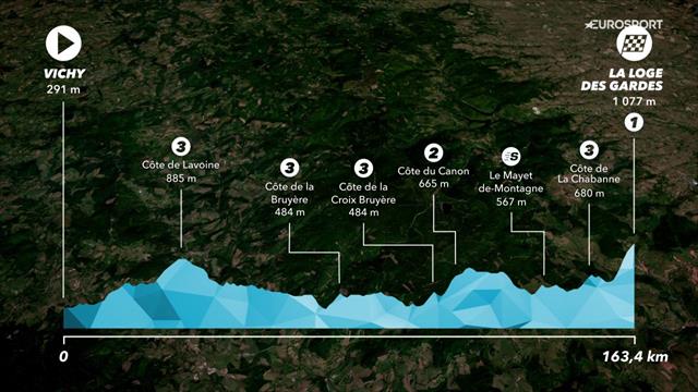 "Strecke und Profil: Der Kurs der 4. Etappe zur ersten Bergankunft des Rennens am Mittwoch an der Loge des Gardes (1. Kategorie) mit sechs Bergwertungen."