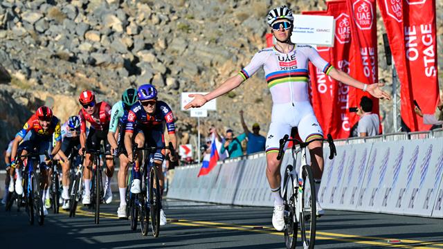 "Tadej Pogacar hat die Schlussetappe der UAE Tour mit der Bergankunft am Jebel Hafeet souverän gewonnen. Der Weltmmeister ließ der Konkurrenz keine Chance. Die Highlights im Video."