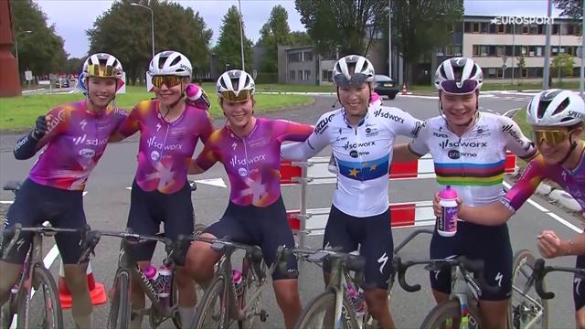 "Zoe Bäckstedt aus Großbritannien hat beim Prolog der Simac Ladies Tour ihren ersten Profi-Sieg gefeiert. Sie ließ die Favoritinnen um Lotte Kopecky hinter sich. Die Highlights im Video."