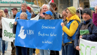 Am Marienplatz: 60 Naturschützer demonstrierten für den Erhalt des Eggartens.